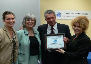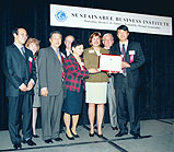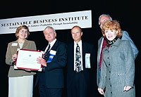 Congresswoman Woolsey joins Clover Stornetta in Sustainable Business User Group speaker Wes Washburn, Operations Manager, Ebay accpeting one of three Seals of Sustainability presented by SBI.